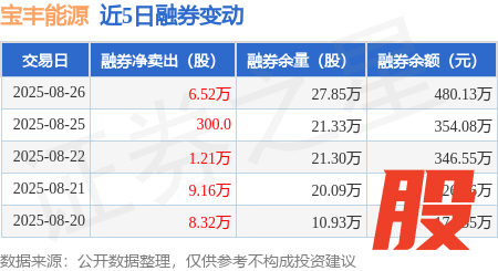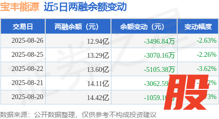 本站消息,8月26日,宝丰能源(600989)融资买入1.58亿元,融资偿还1.94亿元,融资净卖出3622.89万元,融资余额12.89亿元,近20个交易日中有11个交易日出现融资净买入。
